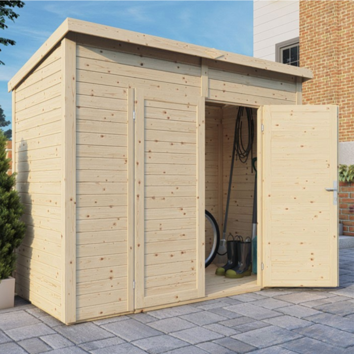 Grâce à son format adossé et à sa conception soignée, l’abri MIDWAY s’intègre harmonieusement dans tout type de jardin. Il représente une solution esthétique, abordable et durable pour ranger efficacement vos équipements.