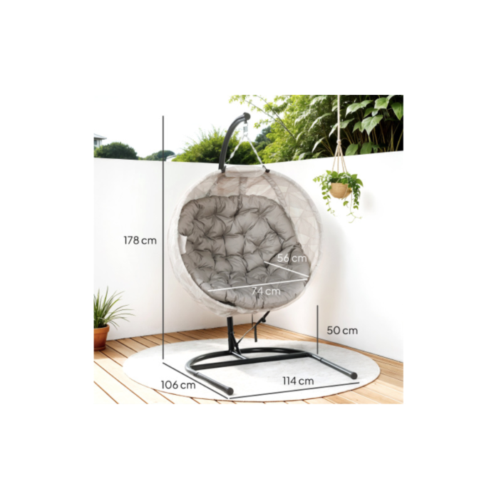 Apportez mobilité, confort et style à vos moments de détente avec ce fauteuil suspendu ovale pliable — l’allié parfait de vos pauses en plein air.