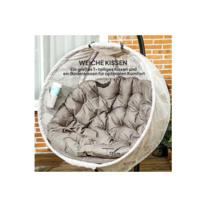Profitez pleinement de vos moments de détente en plein air avec ce fauteuil suspendu ovale pliable, idéal pour le jardin, la terrasse ou le camping. Léger et facile à transporter, ce fauteuil hamac beige est pensé pour allier confort et praticité, avec un porte-gobelet intégré pour garder vos boissons à portée de main.