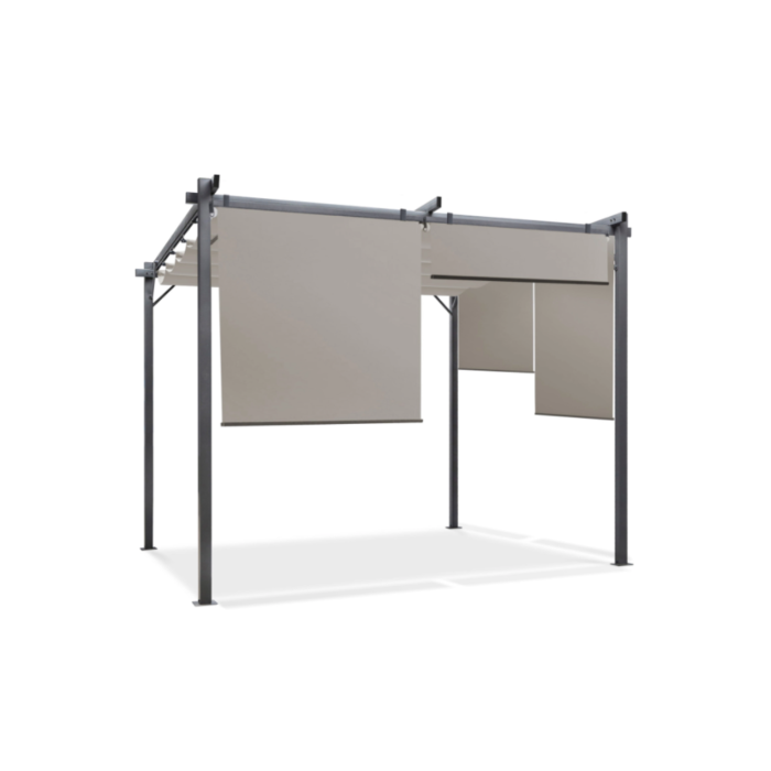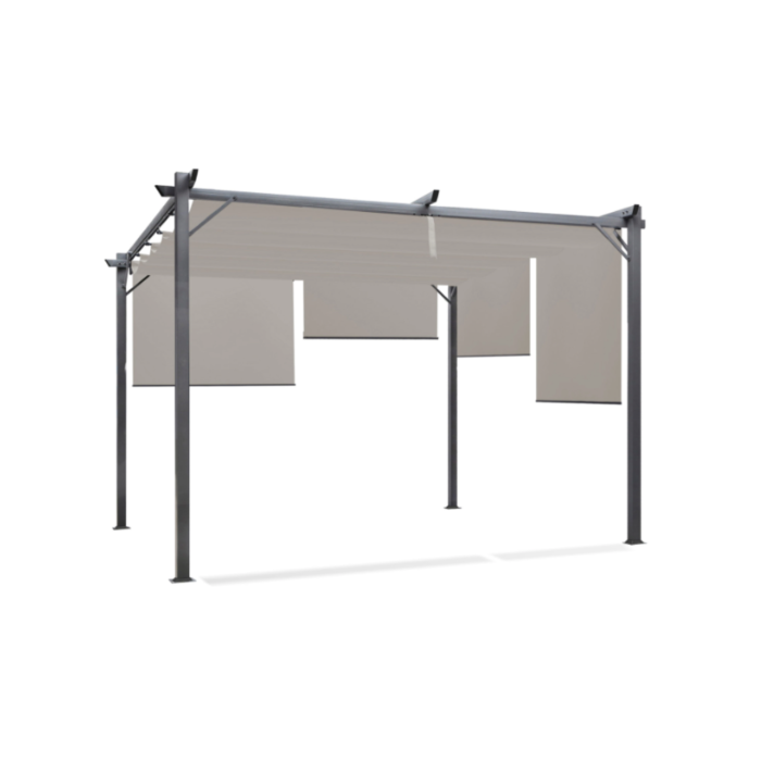 Pergola édition spéciale – Toit rétractable 3 x 4 m – 4 stores – Taupe