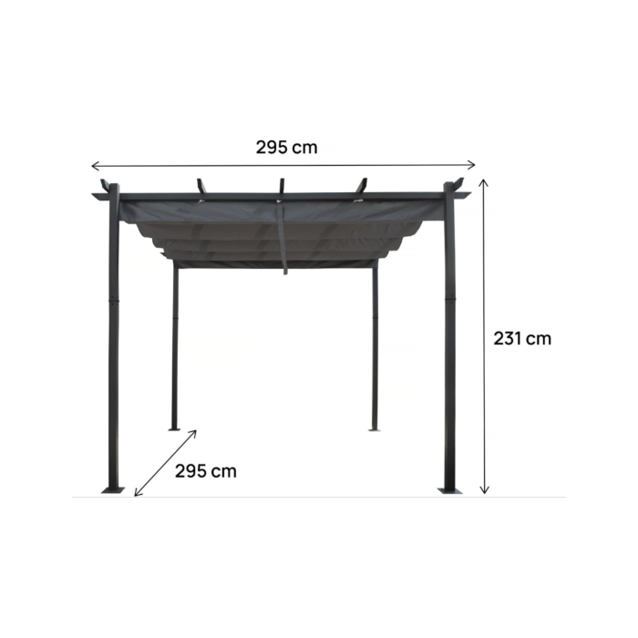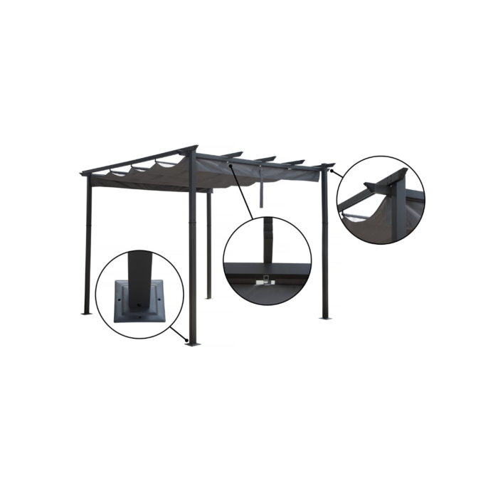 Pergola en aluminium avec toit rétractable – 3 x 3 m – Gris