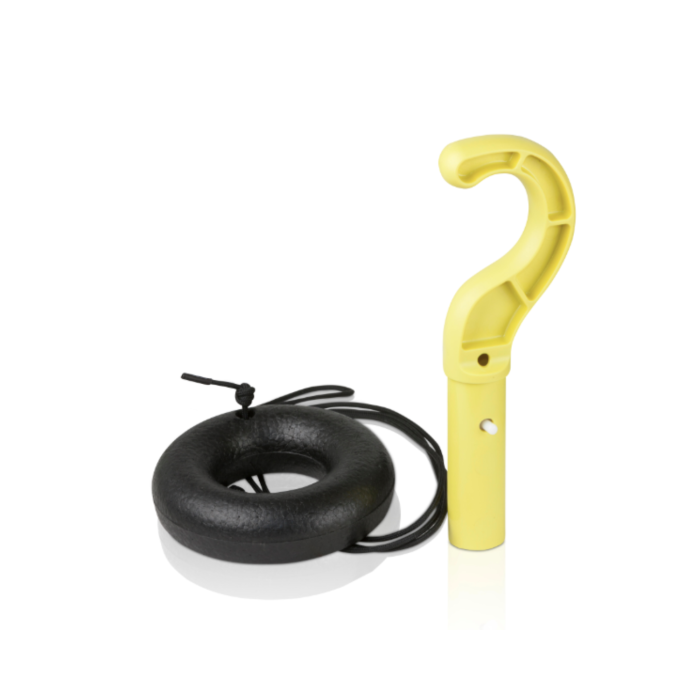 Arrêt automatique en pied de paroi : récupération aisée grâce à l’anneau flottant ou au crochet fournis