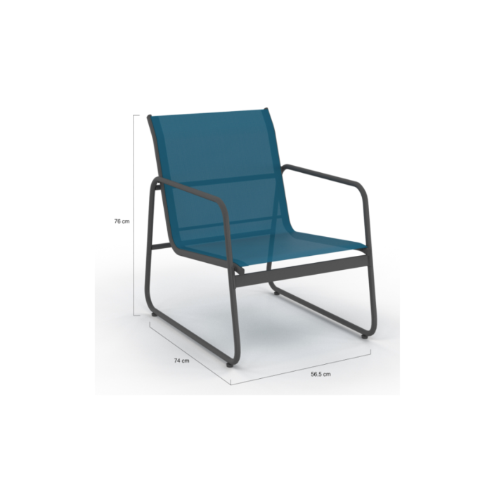 Assises en textilène, un matériau résistant aux intempéries, confortable et facile à entretenir.