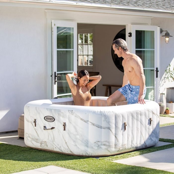 Cette année, INTEX enrichit sa gamme PureSpa avec le Calacatta, un spa gonflable au design sophistiqué inspiré du marbre naturel. Son effet marbre raffiné lui confère une élégance intemporelle, s’intégrant parfaitement dans tous les espaces extérieurs ou intérieurs. Offrez-vous un véritable havre de détente, directement chez vous.